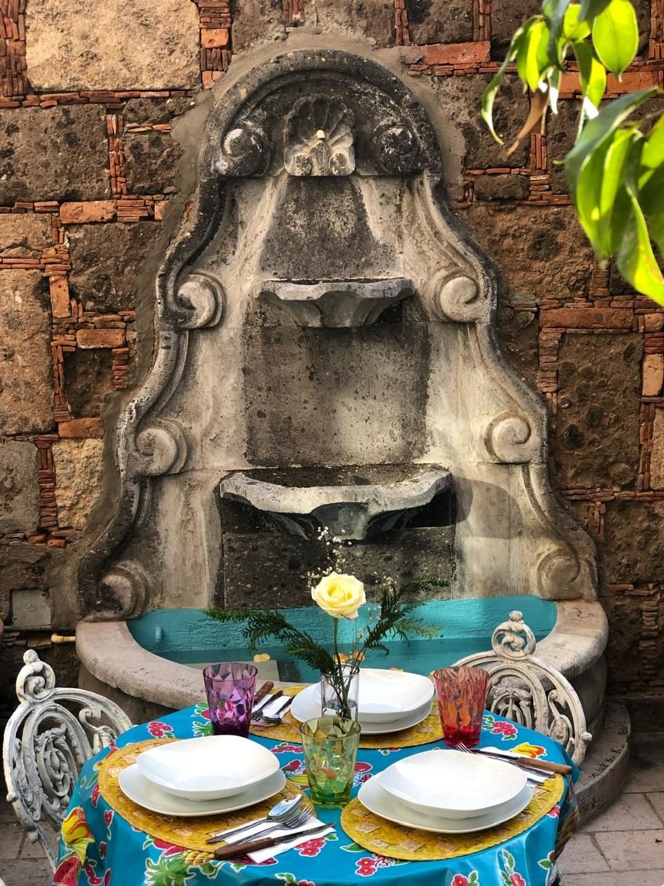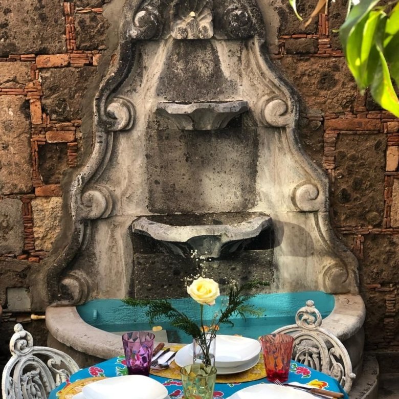 Patio con fuente y parrilla